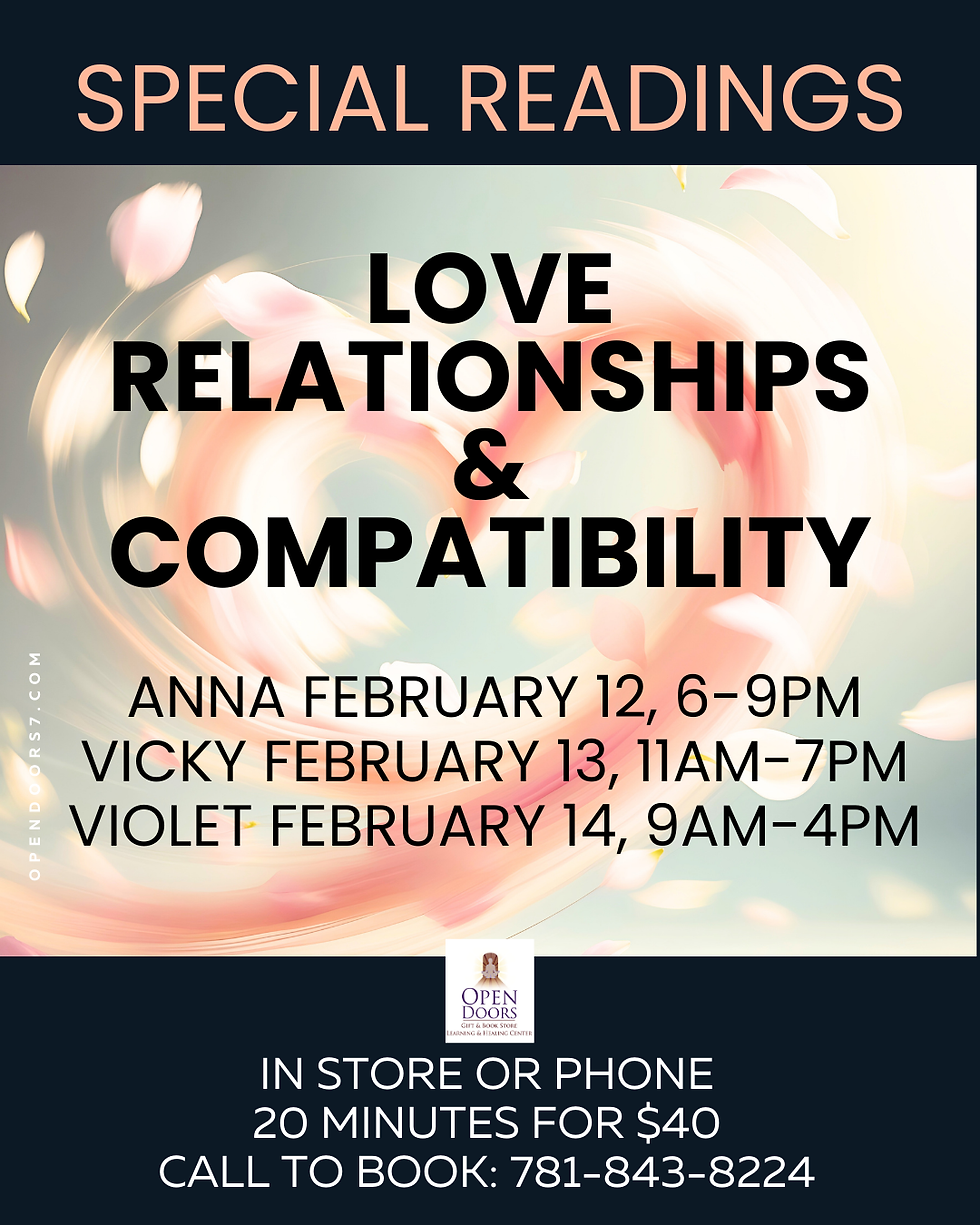 ​Psychic, Tarot, and Mediumship Readings are available during store hours for walk-in or phone customers. We suggest you call to make an appointment. Read about our Money Back Guarantee. Located in Braintree, MA, our store is open 7 days a week / 9am-9pm.